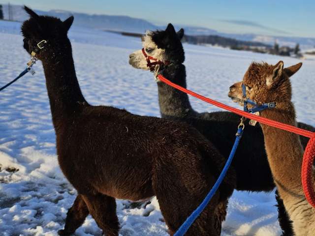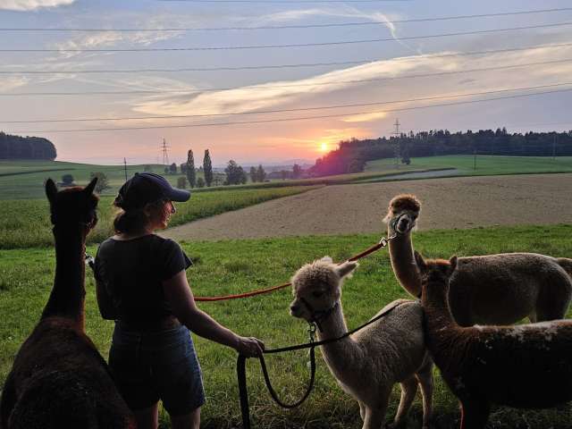 Geniessen Sie beim geführten Alpaka-Spaziergang durch blühende Wiesen und stille Wälder die Natur in ihrer ganzen Vielfalt. Die Alpakas sorgen mit ihrer sanften Art für entspannte Momente und unvergessliche Begegnungen