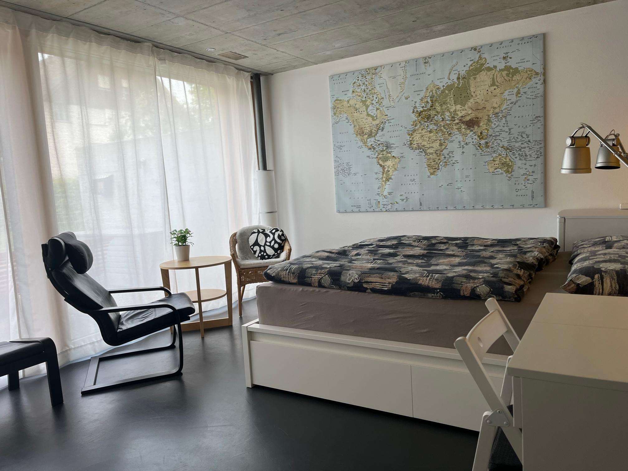 Das Zimmer hat eine grosszügige Grösse und ist mit einem Queensize Boxspring-Bett, einem Kühlschrank sowie einer Kaffeemaschine und einem Wasserkocher ausgestattet. Im Zimmer hat es zusätzliche einen bequemen Sessel, einen Schreibtisch und ein eigenes Badezimmer. Zum Gartensitzplatz hat es ein direkter Zugang aus dem Zimmer. Kostenloses Wlan ist im Haus vorhanden.