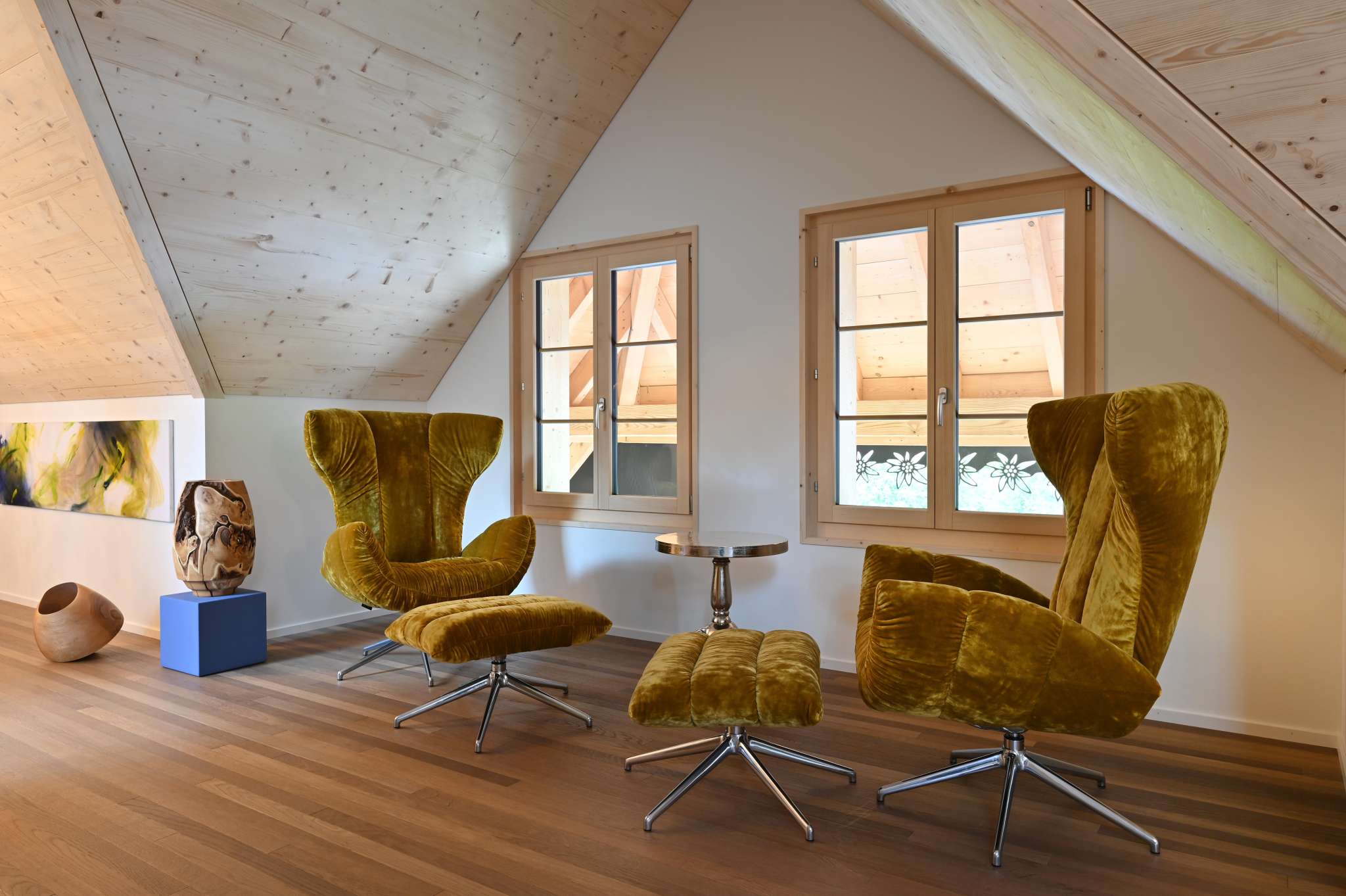 Das Besondere: Jedes Detail ist auf Kunst und Wohlgefühl abgestimmt – mit Werken der Künstlerin Brigitte Buck Litscher und des Bildhauers Heiko Schütz, die den Räumen ihre eigene Atmosphäre verleihen.