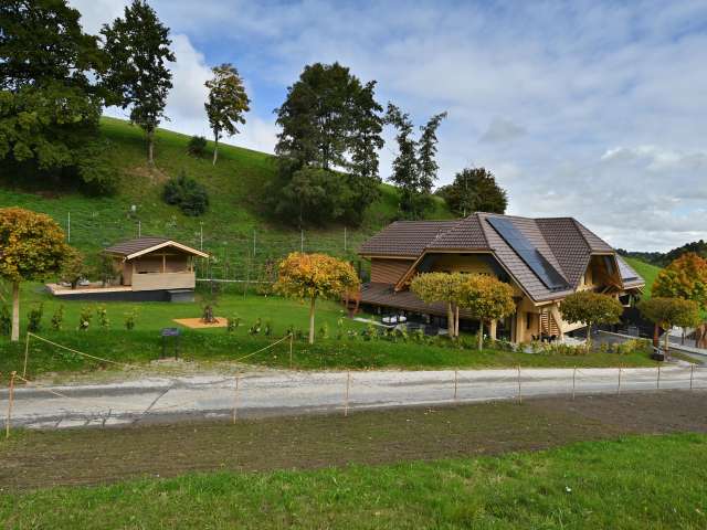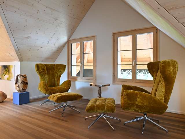 Für längere Aufenthalte steht eine stilvolle 5 ½ Zimmer Ferienwohnung mit 170 m2 Wohnfläche zur Verfügung. Mit ihrem hellen Wohn- und Essbereich, einem gemütlichen Wintergarten, zwei separaten Schlafräumen, jeweils mit eigenem grossem Bad und Ankleide sowie Garten und Sitzplatz bietet sie hohen Wohnkomfort in ruhiger Lage.