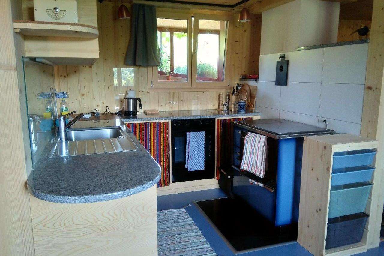 • offene Küche mit Schenk-Ofen und elektrischem Herd