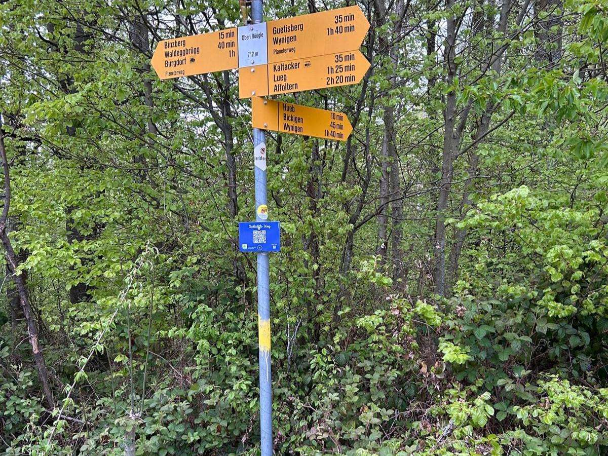 Start ist beim Schulhaus Kaltacker. Auf dem etwa 6 km langen Weg sind zehn Stationen mit QR-Codes angebracht, wo jeweils ein Teil der Geschichte erzählt wird. Für das Abenteuer sind etwa 2 Stunden einzurechnen. Die Geschichten wechseln alle sechs Monate. Es lohnt sich also, den QR-Gschichtli-Weg zu verschiedenen Jahreszeiten zu erleben.