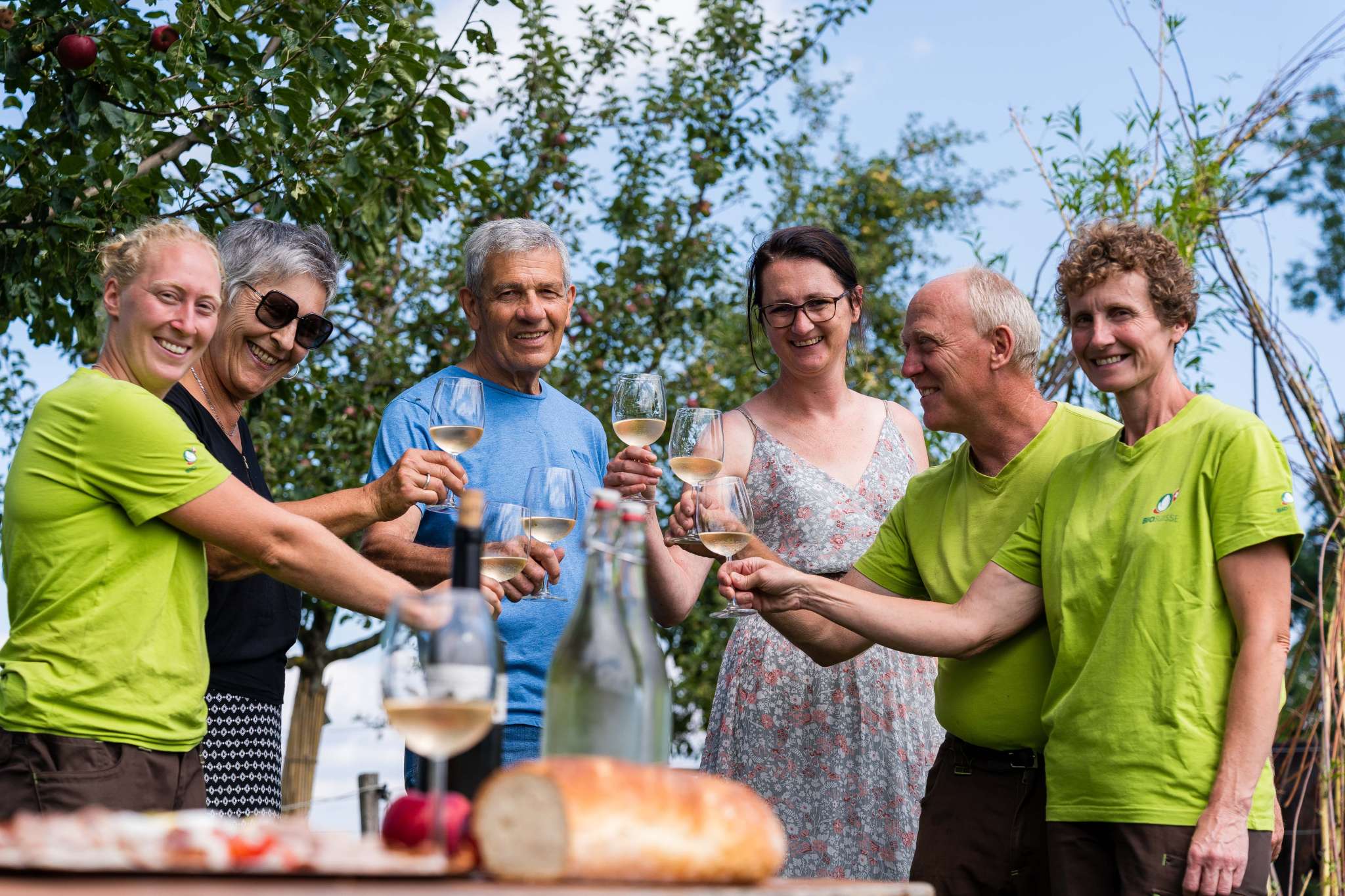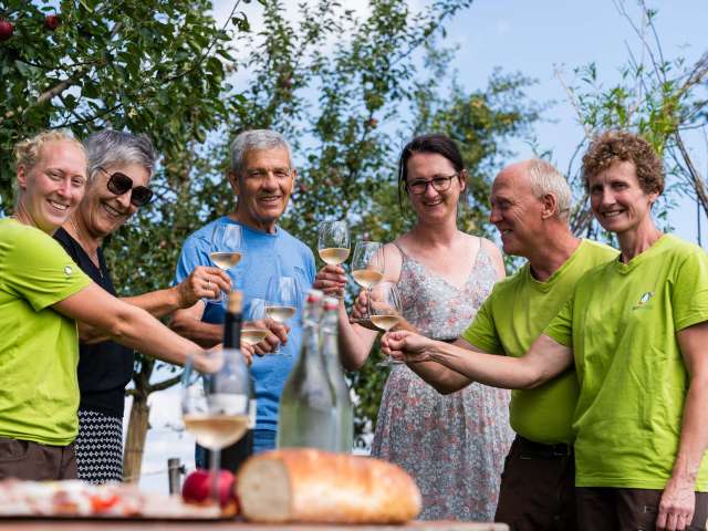 Die verschiedenen Hochstammbäume werden auf einem Lehrpfad erklärt, dieser kann selbständig begangen werden, besonders in der Erntesaison, wenn alle Sorten reif sind, ist ein Besuch empfehlenswert.
