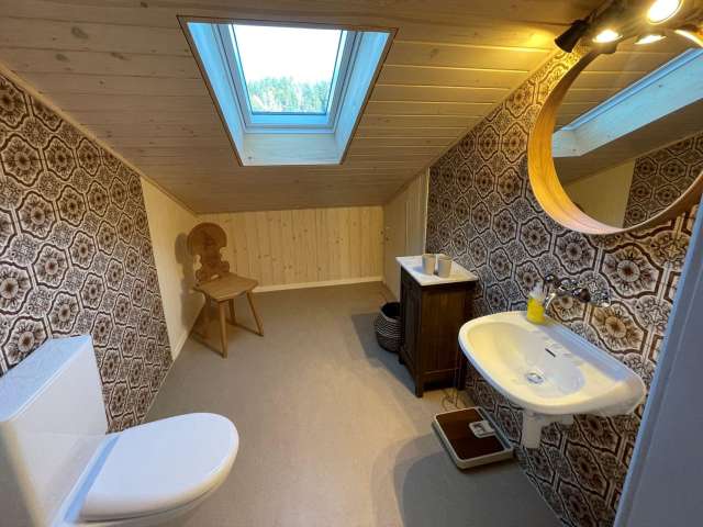 Mit viel Herzblut wurde das alte Stöckli im 2022 sanft saniert und liebevoll gestaltet. Die geräumige Ferienwohnung mit zwei Schlafzimmern und einem Kinderzimmer sowie zwei Wohnzimmern bietet Platz für bis zu 6 Erwachsene und zwei Kinder. Der Balkon bietet eine wunderschöne Aussicht in die Emmentaler Hügel und die westliche Alpenkette (Stockhorn bis Gantrisch). Die grosse Terrasse mit gedecktem Sitzplatz garantiert einen gemütlichen Aufenthalt. Gerne geben die Gastgeber auch einen Einblick und Auskunft über den Landwirtschaftlichen Alltag.