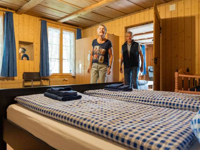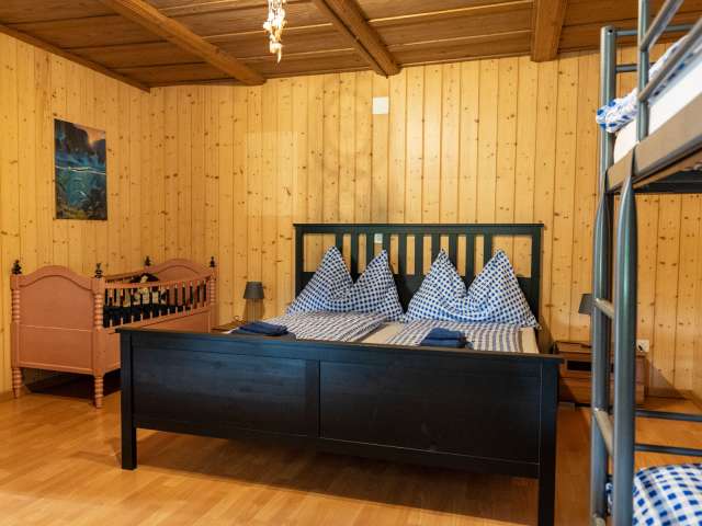Um sich vom Alltag zu erholen, geniessen Sie in der Ferienwohnung WYLER die Ruhe und Abgeschiedenheit. Die grosse 3 Zimmer-Ferienwohnung mit Balkon hat zwei Schlafzimmer, ein Wohnzimmer mit Schlafsofa, eine Küche mit Esstisch und ein Bad mit Dusche und WC. Sie befindet sich im 1. Stock des 1842 erbauten Bauernhauses und bietet Platz für bis 6 Personen. Ein Babybett und ein Hochstuhl können auf Wunsch bereit gestellt werden. Die Wohnung ist voll ausgestattet und es sollte Ihnen an nichts fehlen.