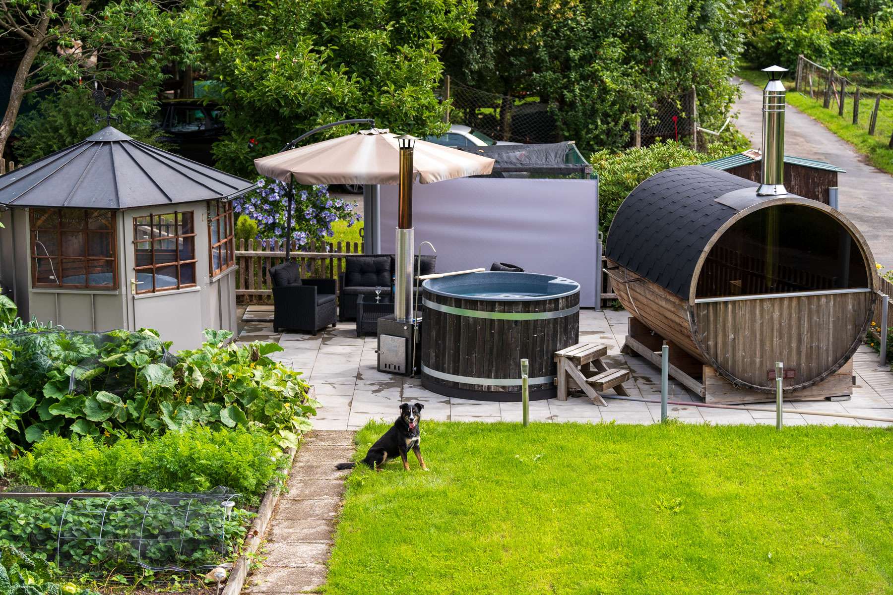 Im Garten steht ein Grillhaus mit Lounge für gemütliche Stunden. Auch ein Hotpot und eine Sauna stehen unseren Gästen nach Voranmeldung zur Verfügung. Frisches Brot oder den Sonntagszopf sowie das Ei von den glücklichen Hühner lassen Sie wohlgenährt in den neuen Tag starten.