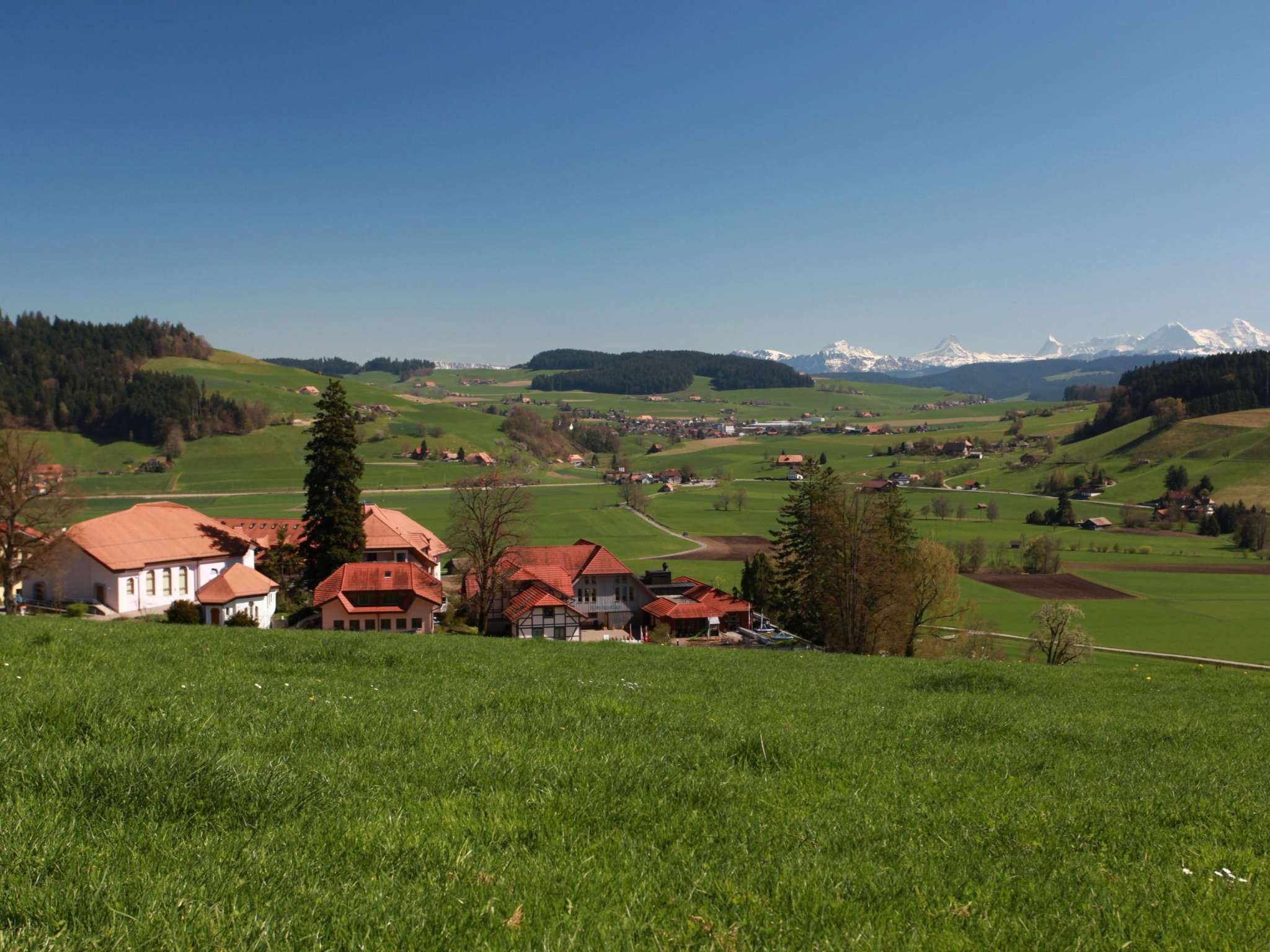 Ruhig ist es in Walkringen und die Sicht auf die Alpen ist grandios. Die verschiedenen Gebäude vom Rüttihubelbad erwecken den Eindruck von einem kleinen, sanft in die Hügellandschaft eingebetteten Dorf. Draussen rund um das Rüttihubelbad gibt es viele lauschige Orte zum Verweilen, zum Boccia spielen oder Grillieren. Wander- und Velowege führen vom Haus in alle Richtungen; im Emmental gibt es bekanntlich viel zu erkunden.