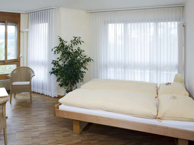 Das Hotel verfügt über 26 Einzel- bzw. Doppelzimmer in der 3-Sterne Kategorie und ist ein zertifiziertes Familienhotel, Seminarhotel und Green Living Hotel. Alle Zimmer sind rauchfrei, mit Dusche/WC und Fön ausgestattet, und teilweise mit Balkon und Sicht auf die Berner Hochalpen. Ein Fernseher wird auf Wunsch gratis ins Zimmer gestellt. Einige Zimmer sind behindertenfreundlich eingerichtet. Auch Familien mit Kindern sind herzlich Willkommen. Die beiden Familienzimmer bieten ideale Übernachtungsmöglichkeiten für bis zu sechs Personen, wovon das Familienzimmer «Himublick» keine Kinderwünsche offen lässt. Überzeugen Sie sich selbst.