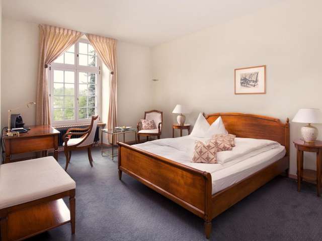 Das Stadthaus bietet Gästen 18 luxuriöse Zimmer, darunter eine Juniorsuite mit 48 m2 und 1 Dachsuite mit 62 m2. Alle Zimmer sind grosszügig und ausgestattet mit Möbeln im Stil Louis XVI und Biedermeier, ergänzt mit echten Antiquitäten, edlen Textilien und modernster Technik.