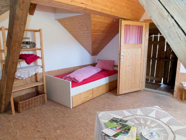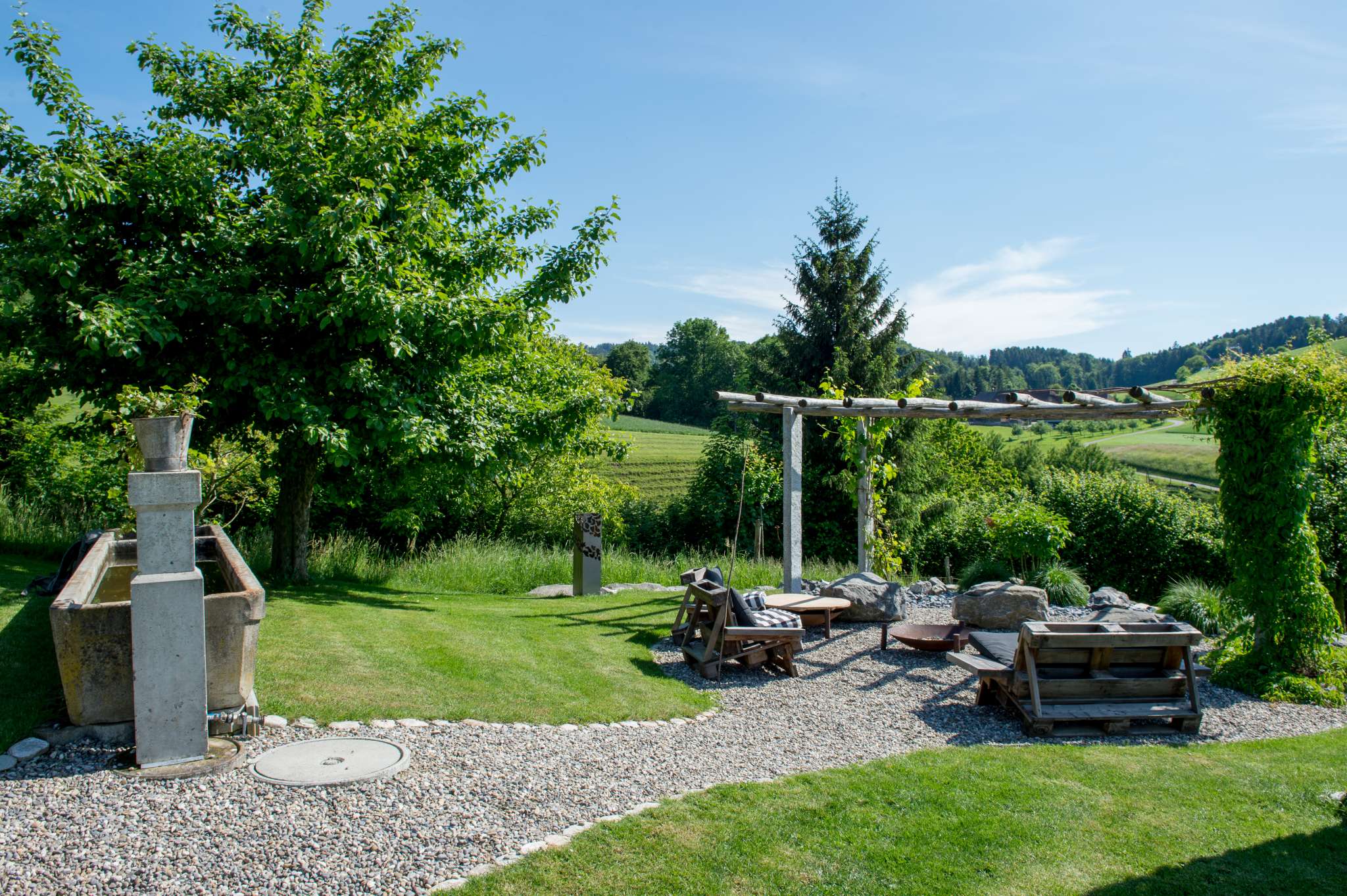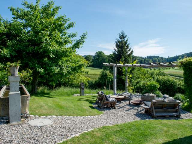 Die Zimmer sind grosszügig angelegt. Es stehen eine moderne Küche und neue Sanitäranlagen zur Verfügung. Die Aussenanlage mit Pergola, Sitzplatz, Spiel-und Liegewiese, Kneippbrunnen und Barfussweg bietet viel Abwechslung. Auch die hofeigene Sauna steht den Gästen zur Verfügung.