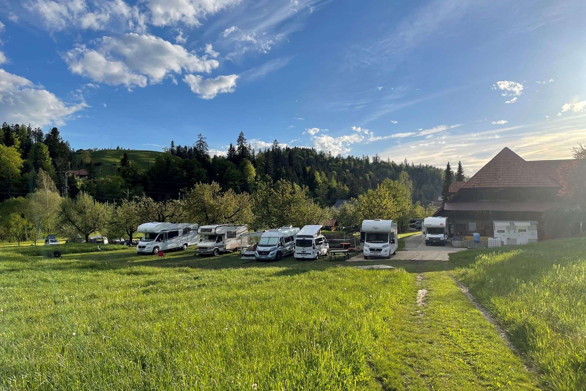 Bei den Kirschbäumen der Hoschtet sind Stellplätze für Wohnwagen, Wohnmobile und Campingbusse buchbar.