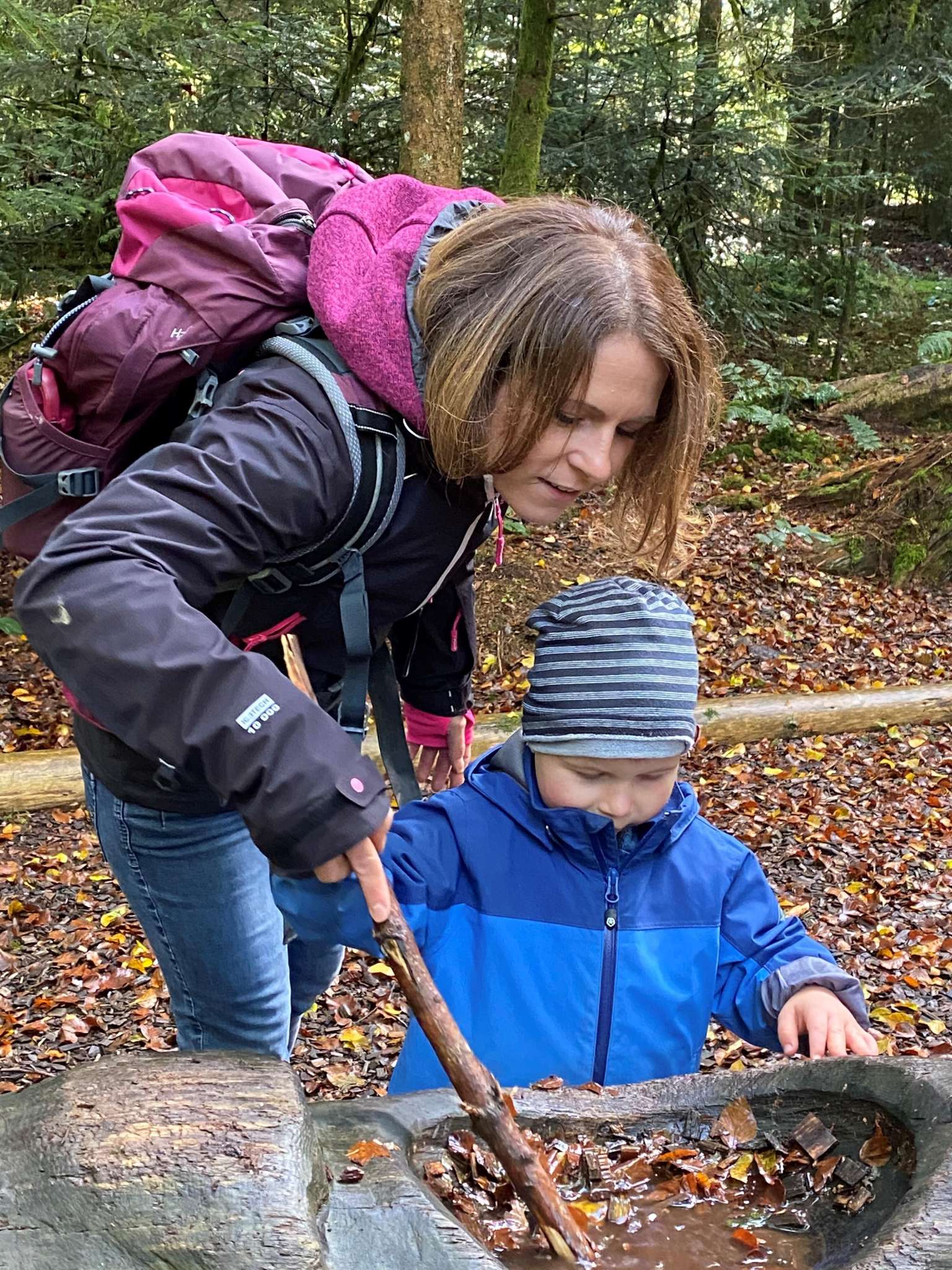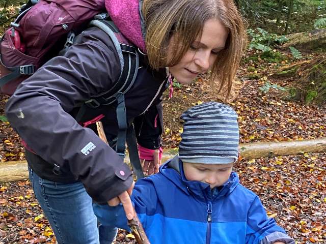 Koboldenpfad quer durch den Wald beim Langenthaler Hirschpark.
