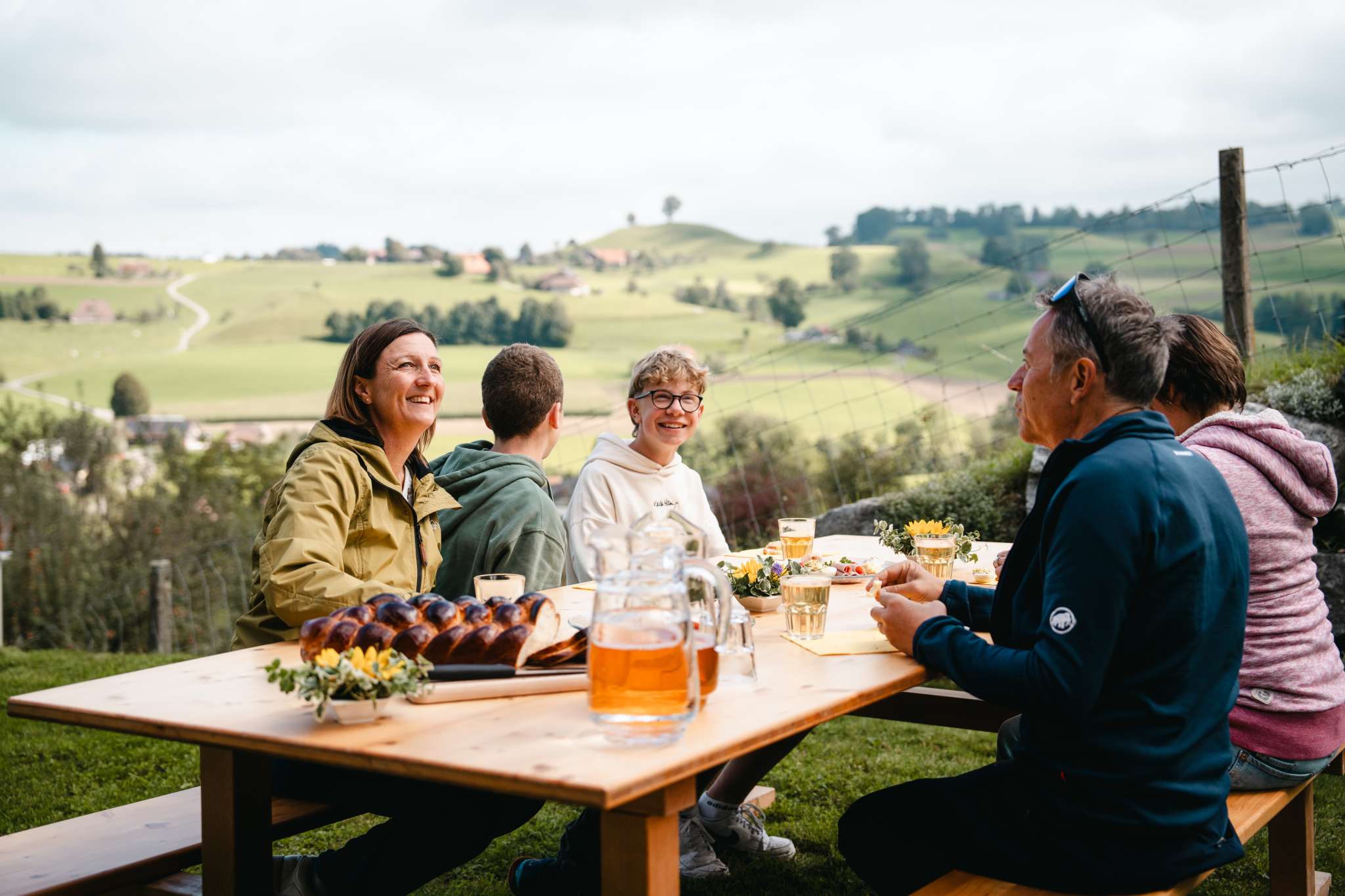Vor, zwischen oder nach dem Essen, kann das Angebot mit einer Lamawanderung, Bauernhofspieli oder einem Zwirbeliradplausch bei dem hofeigenen Produkte gewonnen werden können, ergänzt.