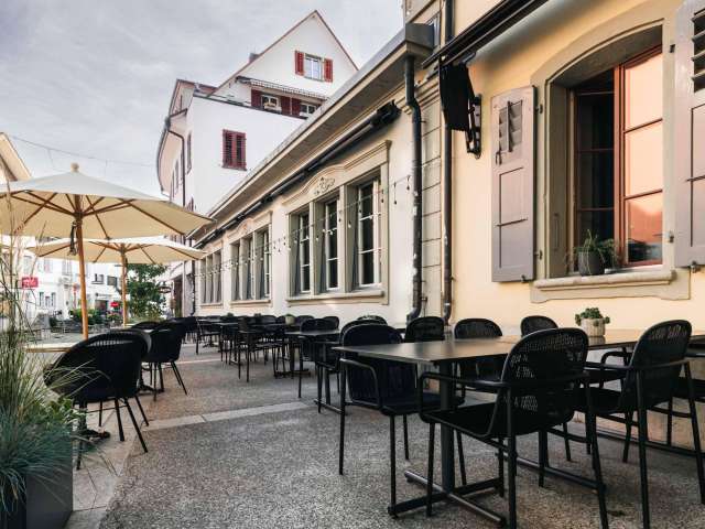 Die Terrasse ist der «Ausweichort» während den wärmeren Monaten. Etwas Ferienstimmung im Stadtzentrum direkt an der Bärenkreuzung gelegen.