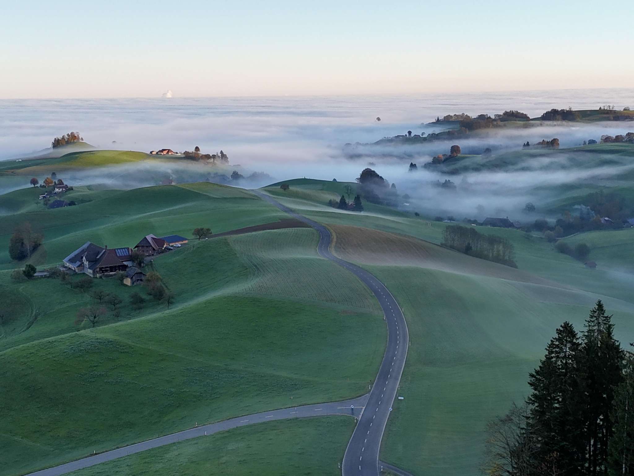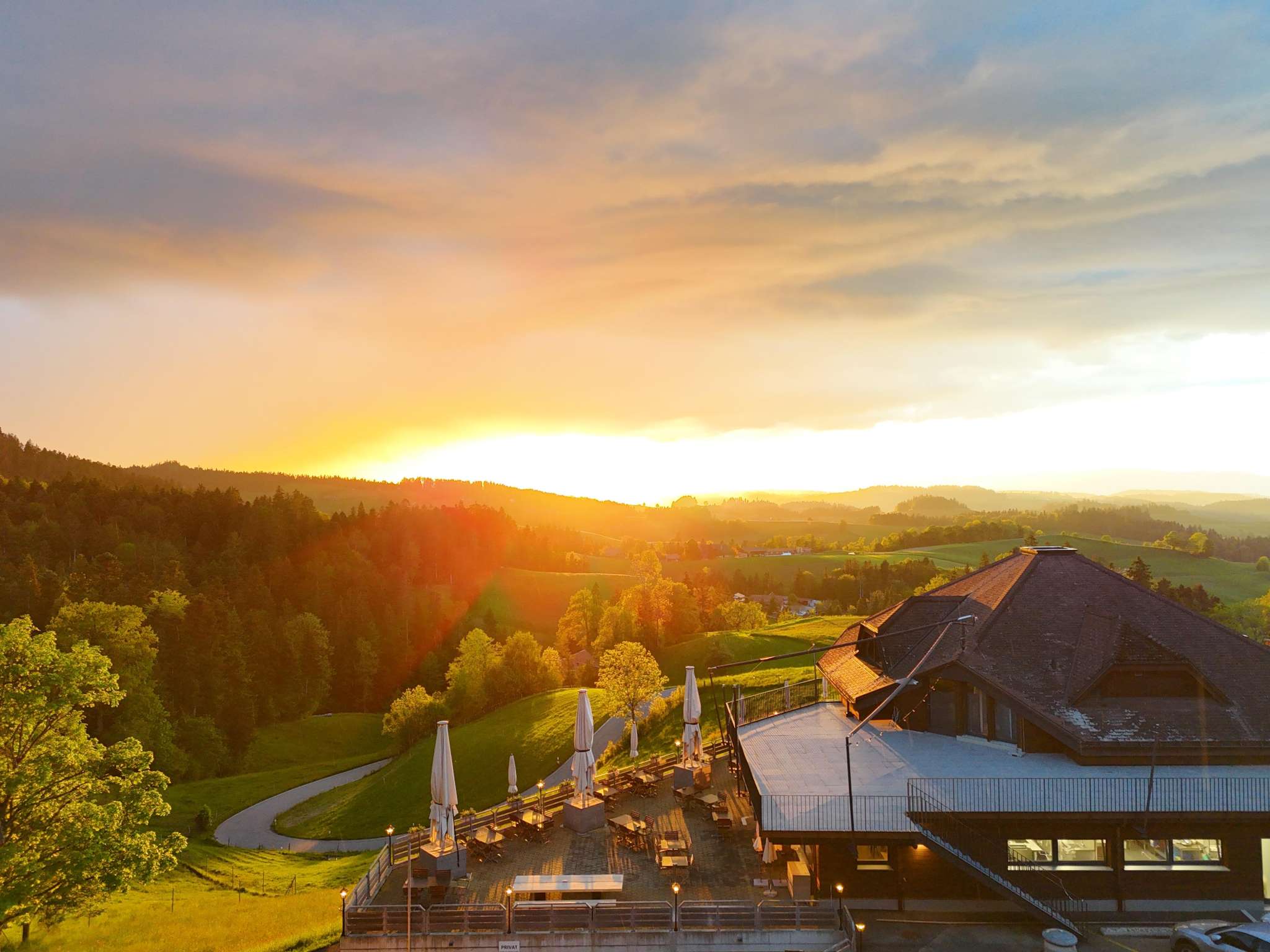 Das Panoramarestaurant Fritzenfluh steht auf 880 Meter über Meer auf dem Boden der Gemeinde Wyssachen. Das Panorama mit den typischen und sanften Hügelzügen des Emmentals reicht bis hin zum Jura und ist dem 1983 erbauten Restaurant eine herrliche Kulisse.