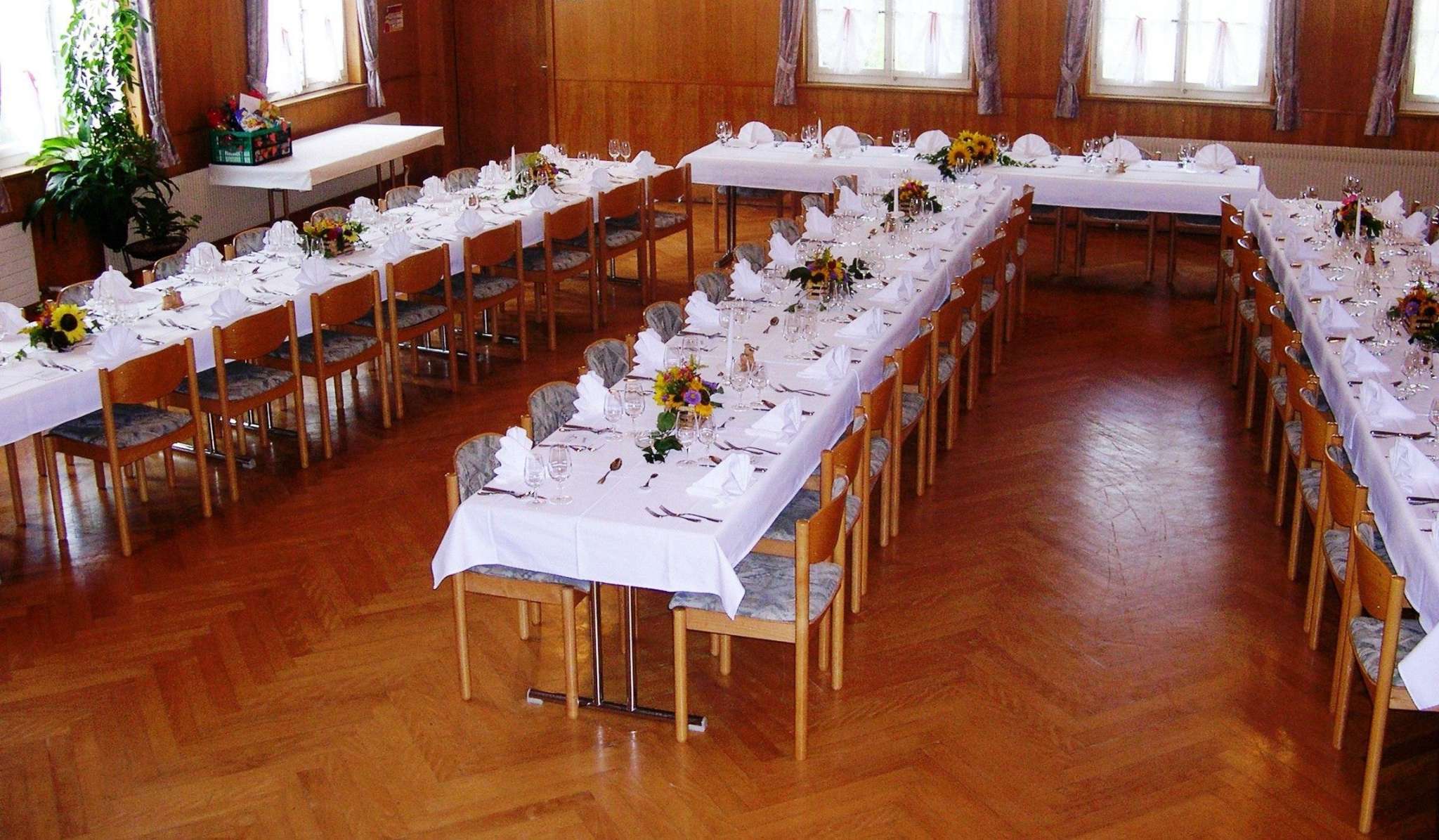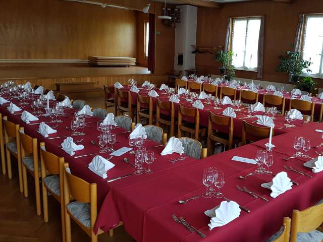 Geburtstage feiern, Tanzen, Heiraten und «umeschwanze» - für das alles können Sie den Bankettsaal für Ihren Event mit 20-120 Personen buchen. Mit Theaterbestuhlung finden bis zu 150 Personen Platz im Saal. Die Familie Badertscher und das Team bewirtet Sie mit Charme und Herzblut während Ihrer Veranstaltung.