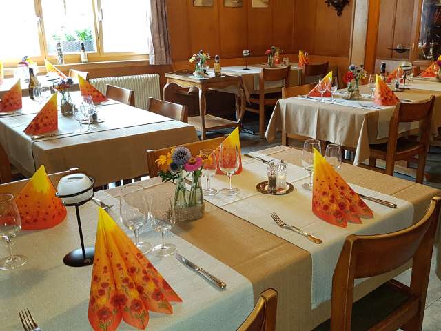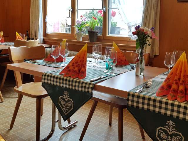 In der Gaststube ist Platz für etwa 20 Gäste. Besuchen Sie die Thalsäge für einen «Frühschoppen», Kaffeeklatsch oder einen gemütlichen Jass. Im Säli, mit Blick auf die schöne Gartenterrasse und den Kinderspielplatz, werden etwa 25 Gäste mit Speis und Trank verwöhnt. Am Mittag und Abend finden Sie faire und günstige Preise für ein wirklich leckeres Essen und einen auserlesenen Wein vor - Dies ist das Geschenk und die Wertschätzung der Gastgeberfamilie Badertscher an alle Gäste.