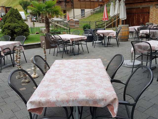 Auf der Gartenterrasse können 50 Personen bewirtet werden. Bei schönem Wetter kann diese auch für Apéros oder kleinere Bankette gebucht werden. Geniessen Sie im Strandkorb oder in der Pergola für einen Moment das Gefühl von Ferien und lassen Sie sich von den Gastgebern verwöhnen. Auch Wanderer und Velofahrerinnen dürfen sich hier stärken.