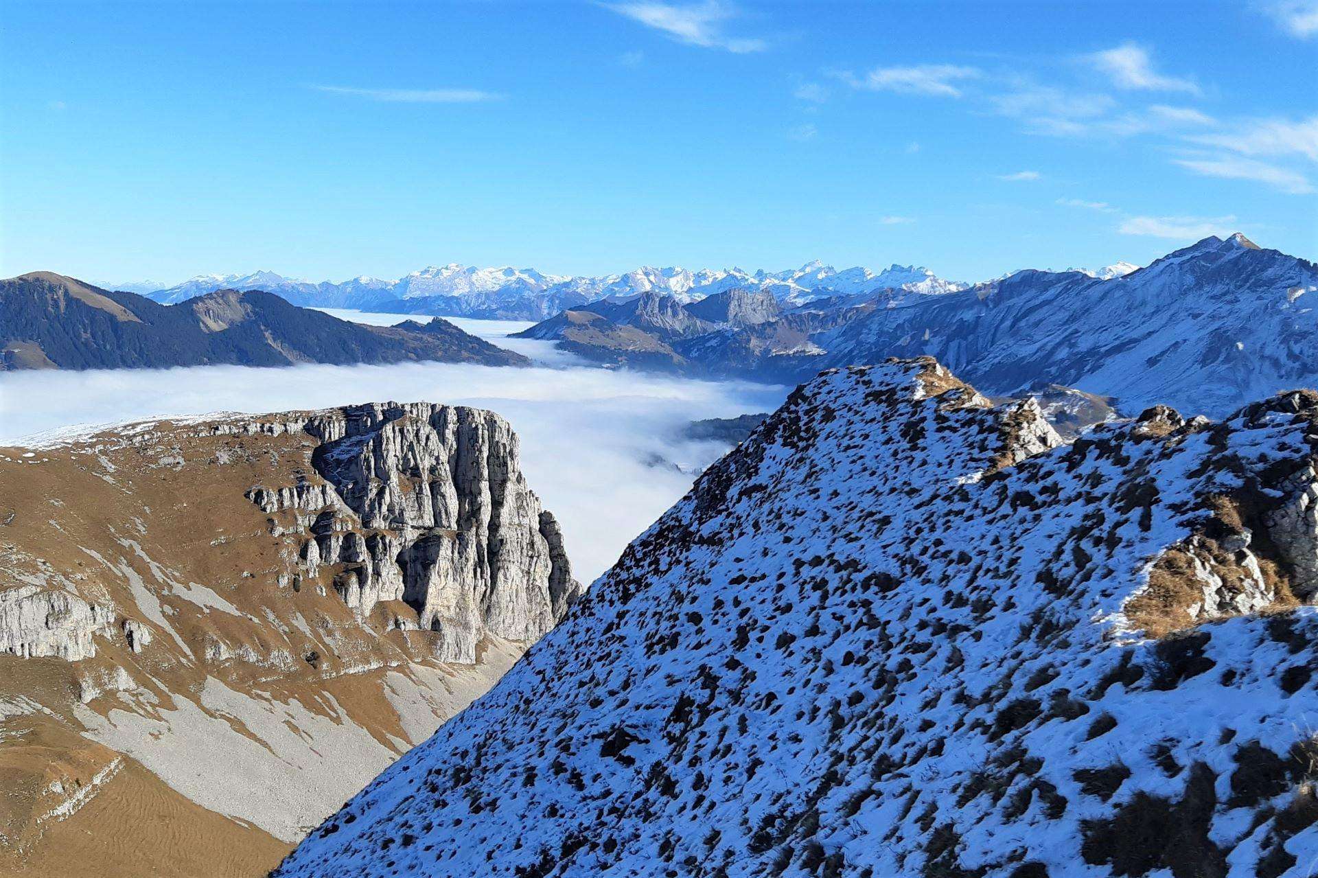 Bizarre Gesteinsformationen prägen das Gesicht der Schrattenfluh. Sie sind das Ergebnis jahrtausendelanger Erosionsprozesse. Dabei wurde der langgezogene Kalkriegel tief eingefurcht. Der silbergrau schimmernde, von Schrunden und Gräben durchsetzte Berg ist ein sehr reizvolles Wanderziel. Reichlichen Genuss verspricht der Höhenweg vom Hengst zum Schibengütsch. Im Norden schweift der Blick über die Hügelwellen des Entlebuchs zum Mittelland und zum Jura,