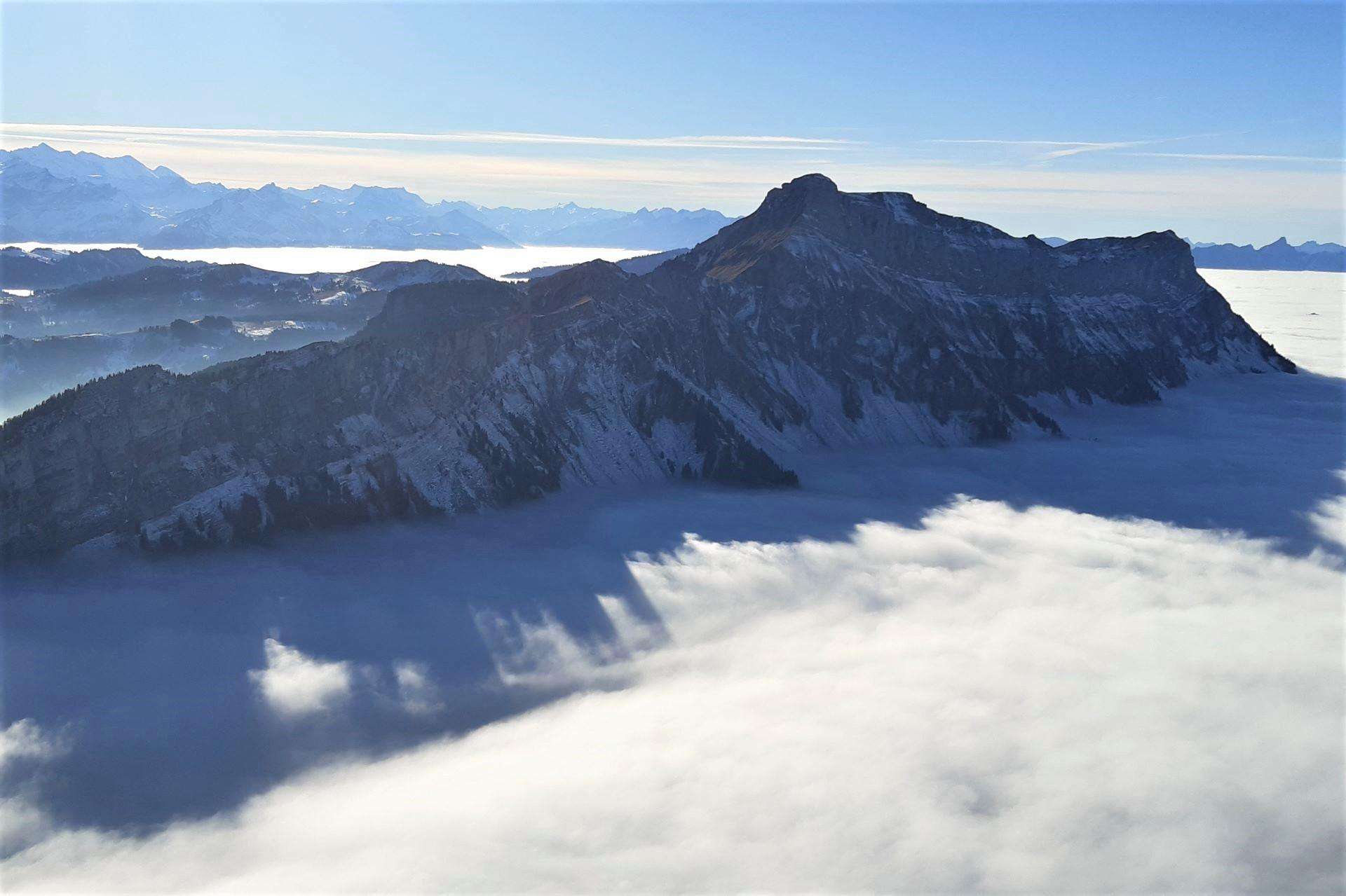 Der Schibengütsch ist 2037 m ü. M. hoch und bildet das südwestliche Ende des Gebirgsstocks der Schrattenfluh. Mit grandiosem Ausblick zum nahen Hohgant und die über den Wolken thronende Berner Prominenz mit Eiger, Mönch und Jungfrau.