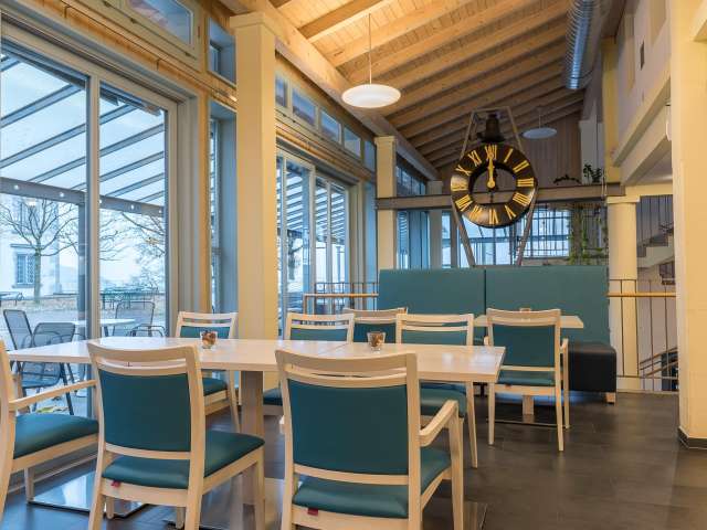 Das Café-Restaurant bietet Ihnen täglich mit Liebe zubereitete Mittagsmenüs, ein grosses Salatbuffet und viele Köstlichkeiten aus der hauseigenen Patisserie an. Das Team freut sich auf Ihren Besuch.