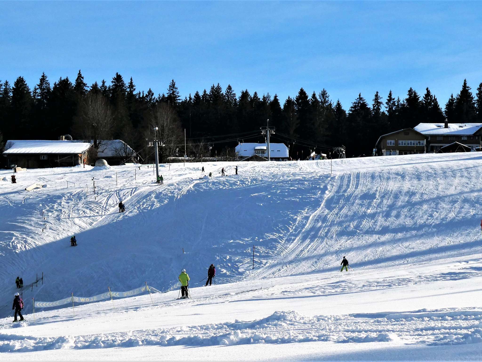 Das Skigebiet bietet eine umfangreiche Ausstattung für Wintervergnügen. Von gut präparierten Abfahrten über einen Snowpark bis hin zu einem Schlittelhang – hier finden Wintersportbegeisterte vielfältige Möglichkeiten. Der Bügellift bringt grosse und kleine Gäste bequem auf den schneebedeckten Hang, und kostenlose Parkplätze stehen zur Verfügung.