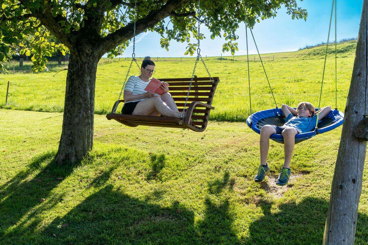 Die heimelige Grillstelle am Waldrand lädt zu einem köstlichen Barbecue ein, bevor Sie den Abend entspannt im warmen Hot-Pot ausklingen lassen. Die Umgebung lädt zu Spaziergängen, Velotouren und Wanderungen ein.