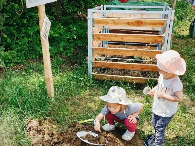 Schulklassen können Unterrichtseinheiten zum Thema «Mein Essen wächst nicht im Supermarkt» buchen. Die Schulkinder lernen die verschiedenen Schritte der Lebensmittelproduktion, wie Saatgut, Boden, Bestäubung oder Kompostieren kennen.