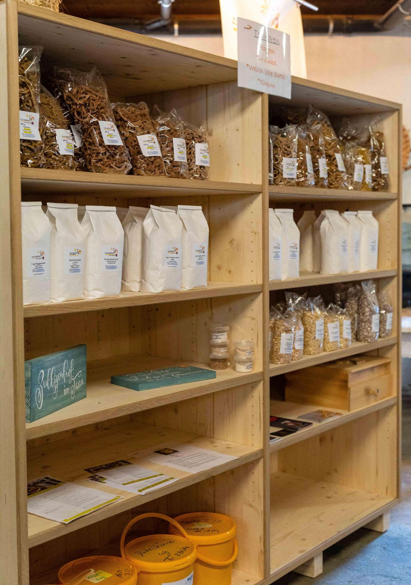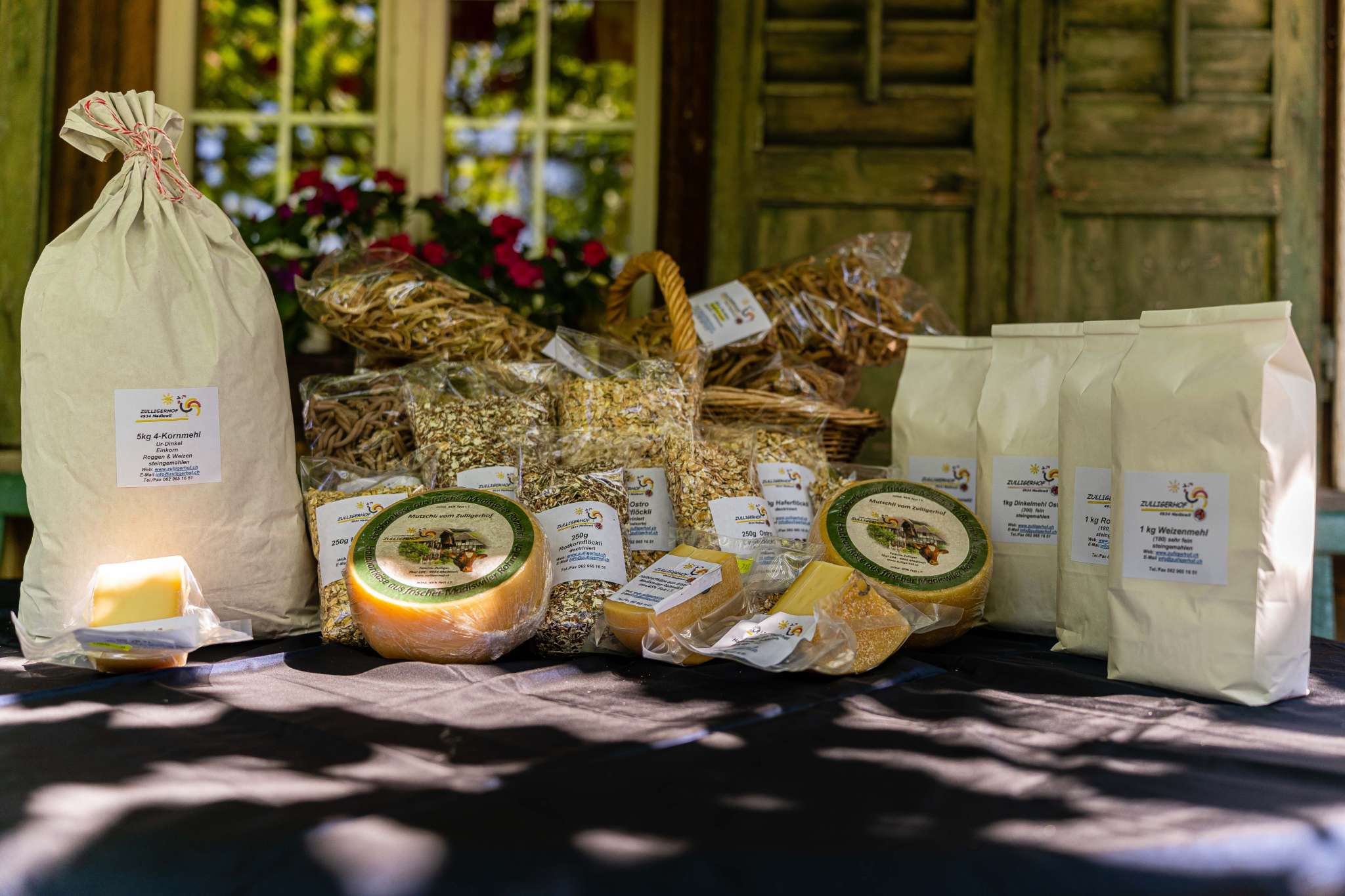 Zulligers bauen Dinkel, Weizen (alte Sorte) und Roggen an. Dieses Getreide wird in der Mühle steingemahlen und zu verschiedenen Mehlsorten verarbeitet.