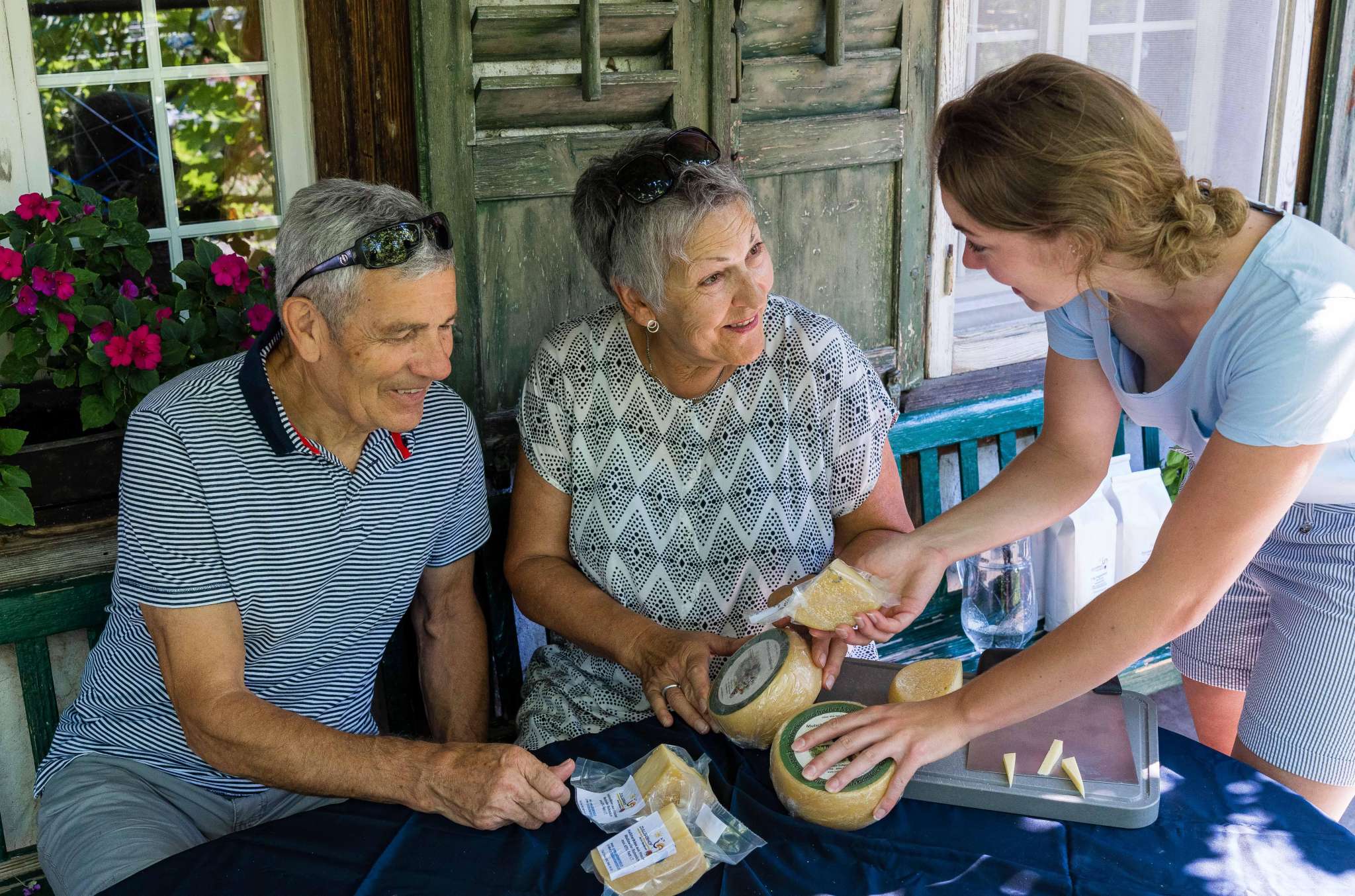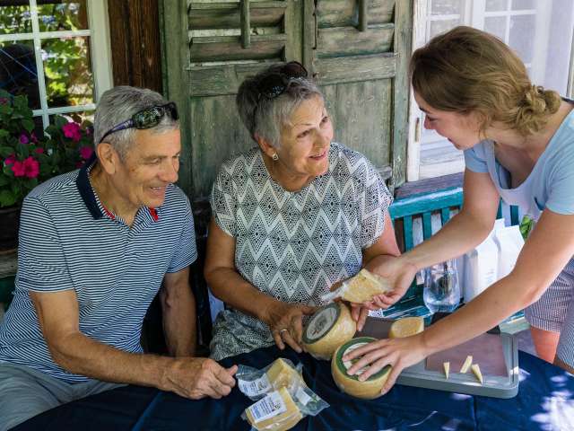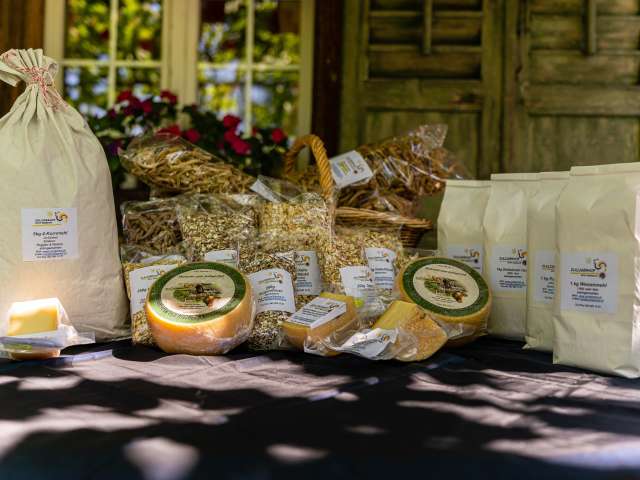 Die Kühe fressen viel Heu und Gras und können das ganze Jahr hindurch auf die Weide. Die Milch wird auf dem Hof verarbeitet. Die unpasteurisierte Milch wird zu einem feinen Mutschlikäse, dessen Geschmack von sahnig mild bis rezent geht, je nachdem wie lange er im Naturkeller reift, verarbeitet.